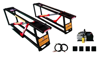 The LUXMAIN AC series is a small, lightweight split car lift that consists of two lifting frames and a power unit, making it extraordinarily easy to store and transport. Each lifting frame can be maneuvered effortlessly by one person, thanks to its tow wheel and universal wheel. This convenience allows automotive technicians to adjust lifting positions quickly and efficiently, optimizing workspace. Furthermore, the hydraulic synchronization device within the power unit ensures that both lifting frames operate in unison, providing a reliable solution for safely lifting vehicles.
